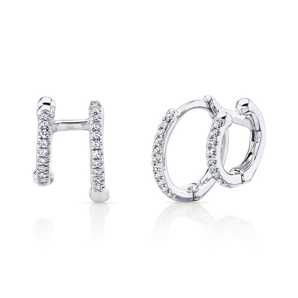 Delicate yet dazzling, these 1/8ctw diamond huggie earrings exude effortless sophistication. Each earring is adorned with a row of brilliant round diamonds, shimmering with graceful fire against the sleek backdrop of 14k white gold. The petite design hugs the ear with refined comfort, making them perfect for both everyday wear and elegant evenings. A timeless expression of understated luxury, these earrings bring radiant sparkle to any look.