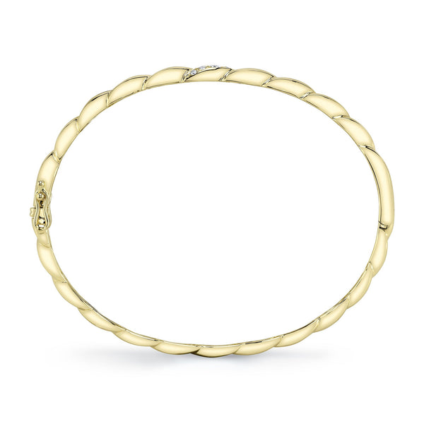 Radiating timeless sophistication, this 1/8ctw Diamond 14k Yellow Gold Twisted Bangle is a stunning expression of elegance and grace. The fluid twist design captures the light beautifully, while a cluster of dazzling round diamonds adds a touch of refined brilliance. Crafted in lustrous 14k yellow gold, this bangle blends modern artistry with classic luxury. Perfect worn alone or stacked, it’s a radiant accent for any occasion.