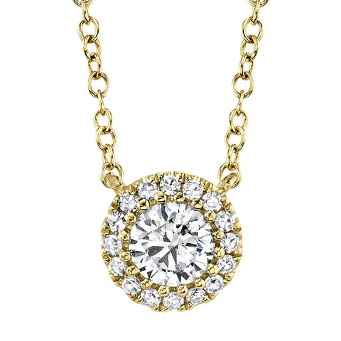 Radiant and refined, this 1/4ctw diamond necklace captures timeless elegance in every detail. A brilliant round diamond is encircled by a dazzling halo of smaller stones, creating a luminous centerpiece that shimmers with every movement. Set in luxurious 14k yellow gold, the pendant’s clean, polished finish enhances the brilliance of the diamonds. Perfect for both everyday sophistication and special occasions, this piece adds a touch of effortless glamour to any ensemble.