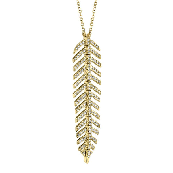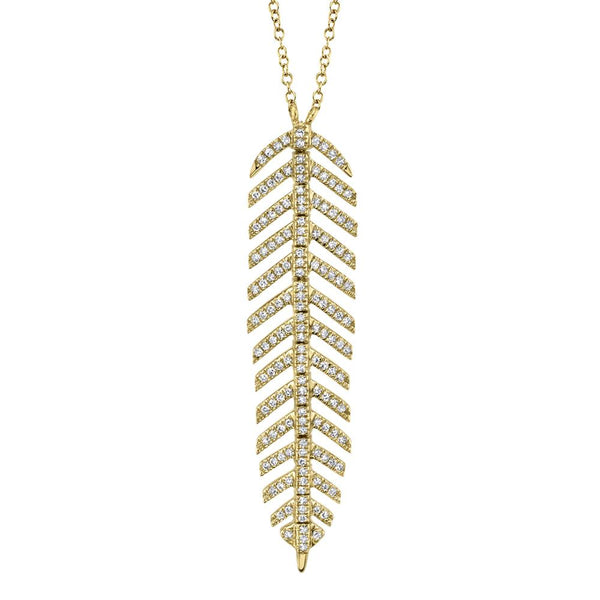 Graceful and luminous, this 1/4ctw diamond feather necklace captures the ethereal beauty of nature in sparkling elegance. Each delicate strand of the feather design shimmers with hand-set round diamonds, creating a mesmerizing play of light and movement. Crafted in radiant 14k yellow gold, the pendant exudes sophistication and modern charm. Perfect for adding a touch of refined brilliance, this piece is a stunning symbol of freedom and grace.