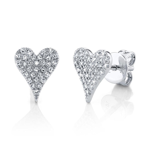 These 1/8ctw Diamond 14k White Gold Pavé Heart Stud Earrings radiate timeless romance with a modern edge. Each delicate heart is meticulously encrusted with brilliant round diamonds, their pavé setting creating a continuous shimmer that catches the light from every angle. Crafted in luminous 14k white gold, the design exudes refined sophistication and enduring charm. Perfect for daily wear or as a heartfelt gift, these earrings capture the essence of love and elegance in every sparkling detail.
