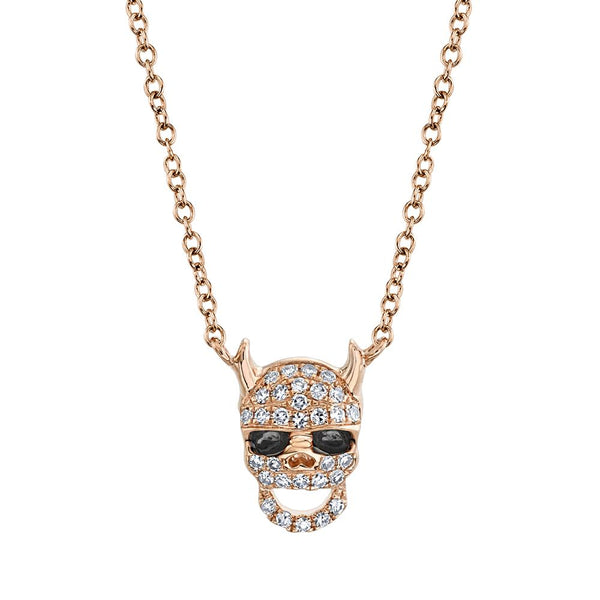 0.07CT 14K R/G WITH BLACK RHODIUM GOLD DIAMOND DEVIL SKULL NECKLACE