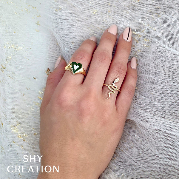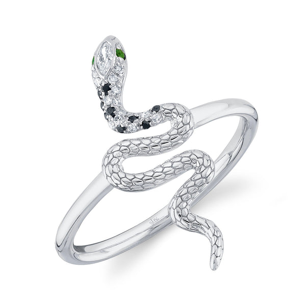 0.08CT BLACK & WHITE DIAMOND & 0.01CT EMERALD 14K W/G SNAKE RING