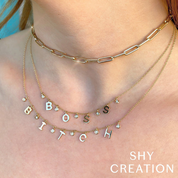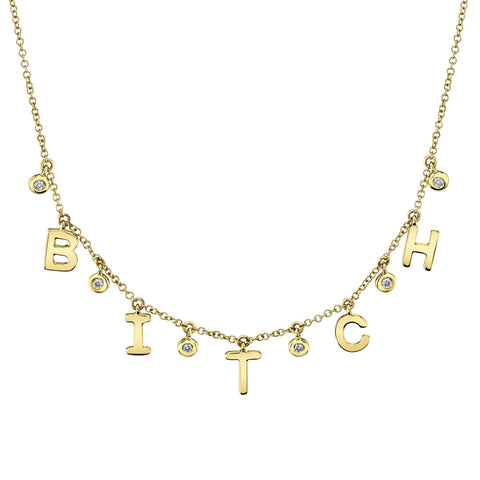 0.08CT 14K Y/G DIAMOND "BITCH" NECKLACE