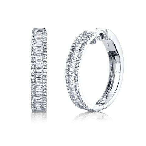 1.18CT 14K W/G DIAMOND BAGUETTE HOOP EARRING