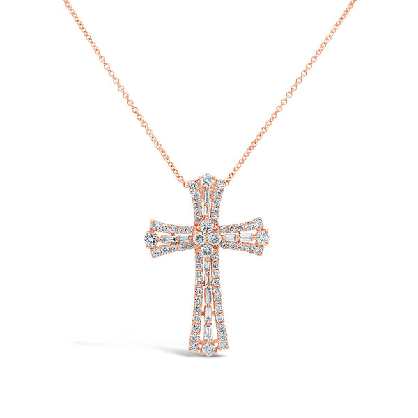 1.24CT 18K R/G DIAMOND BAGUETTE CROSS NECKLACE