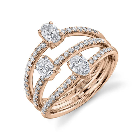 1.24CT 14K R/G DIAMOND EMERALD OVAL PEAR RING