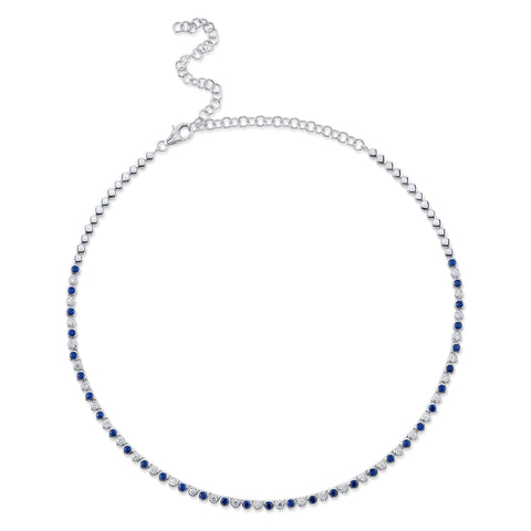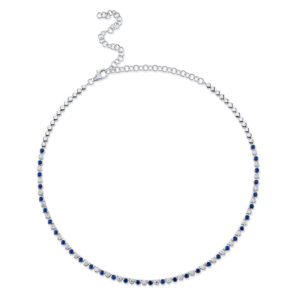 1.27CT DIAMOND & 2.08CT BLUE SAPPHIRE 14K W/G BEZEL TENNIS NECKLACE