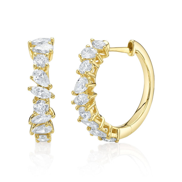 1.45CT 14K Y/G DIAMOND MARQUISE PEAR ICY HOOP EARRING