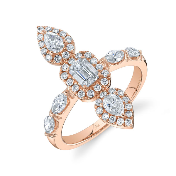 1.46CT 14K R/G DIAMOND EMERALD MARQUISE PEAR LADY'S RING