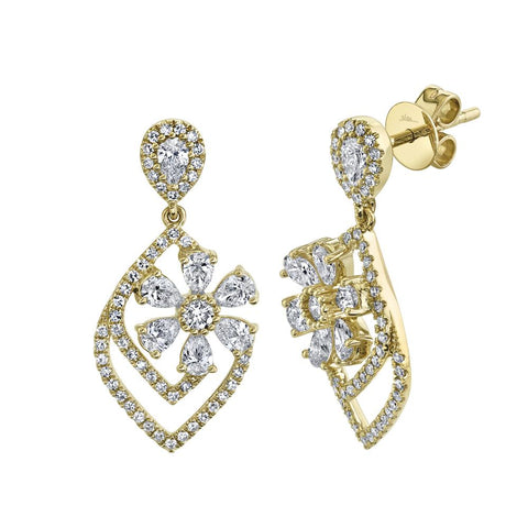 1.48CT 14K Y/G DIAMOND PEAR FLOWER EARRING