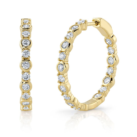 1.49CT 14K Y/G DIAMOND BEZEL HOOP EARRING