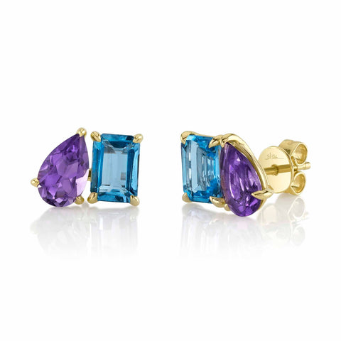 3.66CT 14K Y/G AMETHYST & BLUE TOPAZ STUD EARRING
