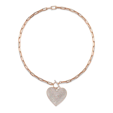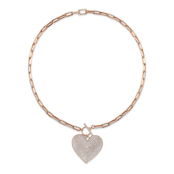 6.29CT 14K R/G DIAMOND PAVE HEART PAPER CLIP LINK NECKLACE