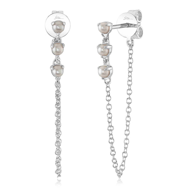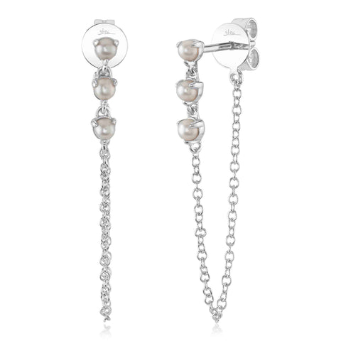 14K W/G CULTURED PEARL CHAIN EARRING