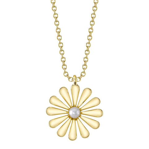 14K Y/G CULTURED PEARL FLOWER NECKLACE
