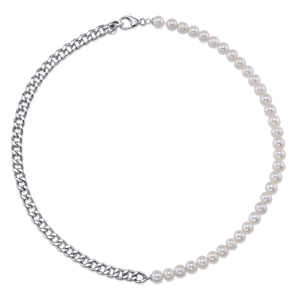 14K W/G CULTURED PEARL LINK NECKLACE