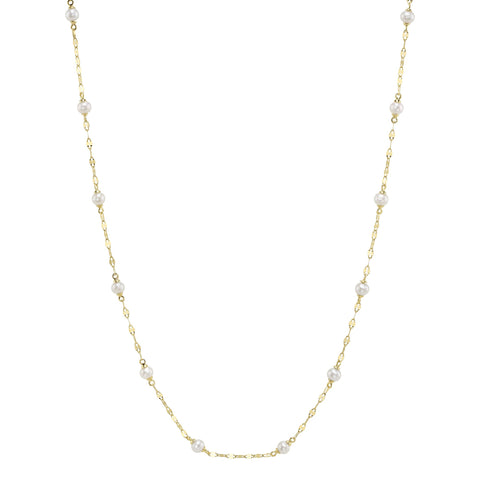 14K Y/G CULTURED PEARL SPARKLE CHAIN NECKLACE
