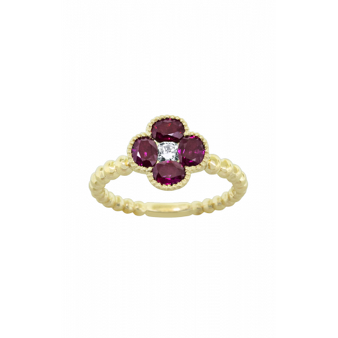 This exceptional fashion ring from Spark Creations is a true statement piece that’ll liven up any outfit. This gemstone fashion ring pairs with just about any pattern. Resilient 18k yellow gold ensures your fashion ring will always be lustrous. A wonderful diamond center stone displays a wonderful stream of light during the day or night. A graceful setting shields the round center stone. Pushing the levels of luxury and opulence, ruby stones are featured. Each ruby is expertly cut into oval shapes, allowing for an unmistakable brilliance. AZZI Jewelers carries the finest fashion rings from the hottest jewelry designers. Contact us online or over the phone for more information, or visit our showroom and see this piece for yourself!