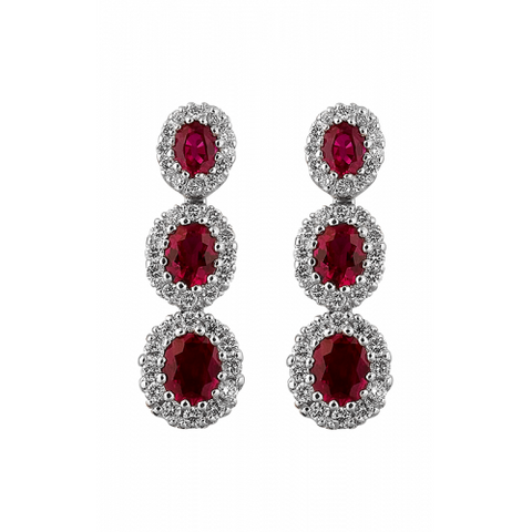Earrings incorporate elegance and design into any attire. These attractive gemstone, drop earrings from Spark Creations can instantly add some pizzazz casual wear or complement your formal get-up. These earrings are made of 18k white gold, which look great under any light. Magnificent diamond and ruby stones draws the eye to its finely cut facets and kaleidoscopic display of light. A durable setting defends the oval and round stones from everyday life. Rest assured that the earring backs will keep your look intact for the entire day. AZZI Jewelers in Ingham County brings customers an impressive of modern and vintage earrings and fashion jewelry. For more information reach out to us online or over the phone.