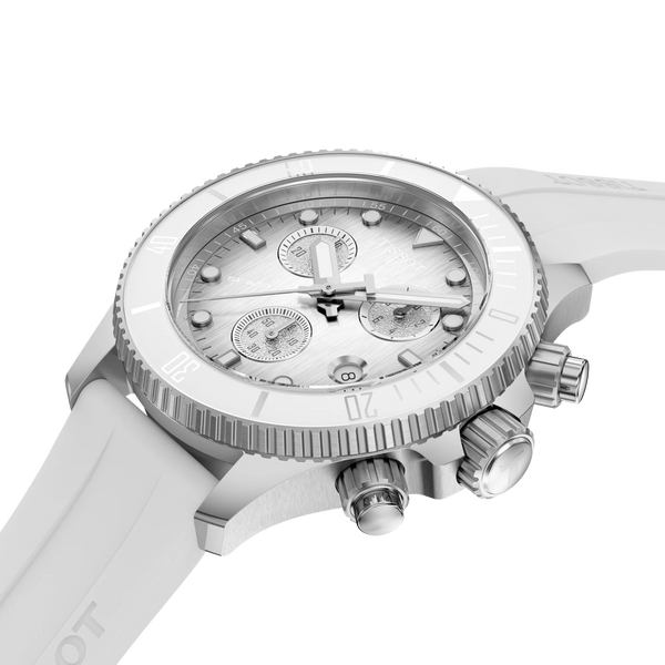 Born from the Seastar’s heritage, the new 38mm Quartz Chronograph introduces a new expression of the collection’s signature identity — bringing precision to motion and personality to every variation. Its 38mm stainless-steel case is water-resistant up to 30 bar (300m/ 1000ft), offering reliable performance in a format that suits a wide range of wrists. Powered by a Swiss quartz chronograph movement, it features a watersport bezel, screw-down crown and case back, and chronograph sub-dials for precise timing. Luminescent hands and markers ensure legibility in low-light conditions. Available in a range of configurations, the collection brings a wide variety of finishes and strap options to suit different moods and styles.