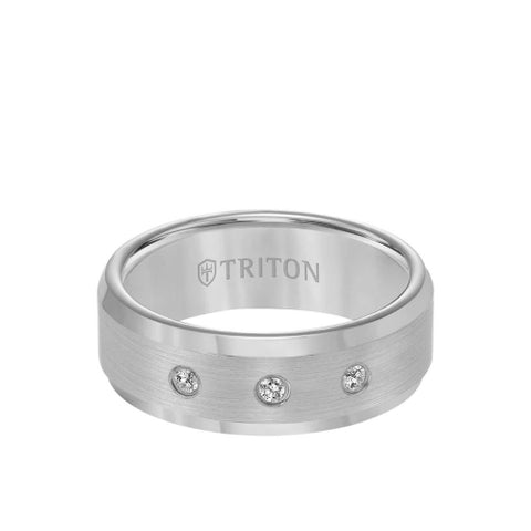 8mm Tungsten carbide Bevel Edge comfort fit Diamond band with satin finish