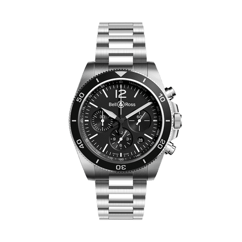 This stylish timepiece from Bell & Ross is out to prove you can have the best of both worlds with style and functionality. You gents can't fail with this wrist watch. The automatic (self winding) movement in this watch is an engineering triumph, with its intricate gears and mechanisms functioning flawlessly to maintain time with unparalleled accuracy. The watch’s face is decked with a black dial that not only matches but highlights the piece, as a whole. Features such as central 60 second hand, chronograph, date, and small second hand as added complications make this piece more functional than ordinary. Now surely your watch won’t only tell time, it will also tell of your endearing sense for fashion and functionality. AZZI Jewelers is an authorized and trustworthy distributor of Bell & Ross watch.
