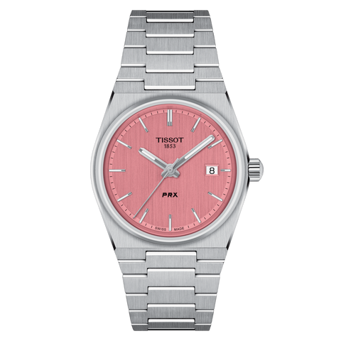 The Tissot PRX T137.210.11.331.00 is a model suitable for both ladies and gentlemen. A Swiss Made quartz movement is responsible for its operation, along with an EOL battery depletion indicator. Preserved in silver color scheme, it is a perfect combination together with the pink dial enriched with analog hour markers. At the 3 o'clock position, there is a day-of-the-month date tracker, which allows you to monitor each day more closely. In addition, the model has to offer a high-quality sapphire crystal glass, which is scratch-resistant and waterproof at 10 atm.