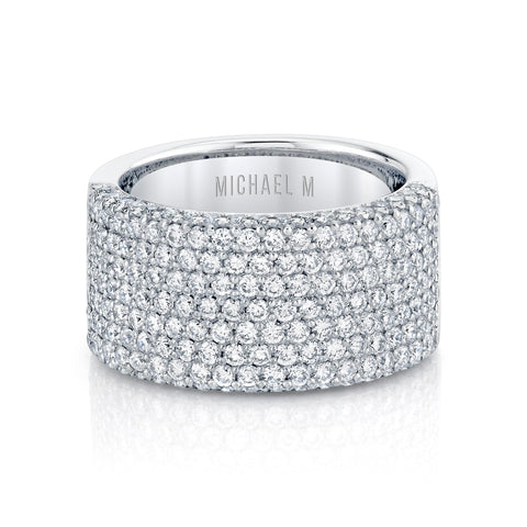 OurEuropa 9 Row Band is crafted with exquisite attention to detail, this band features 2.57 ctw round diamonds in a pave setting, radiating a sparkling brilliance that is sure to turn heads.