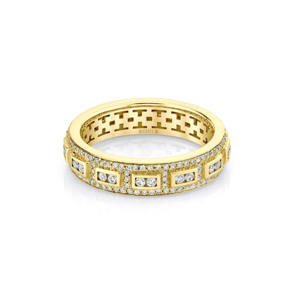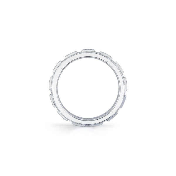 Our Europa Geo Pavé Band is crafted with exquisite attention to detail, this band features 2.66 ctw round diamonds in a pave setting, radiating a sparkling brilliance that is sure to turn heads.