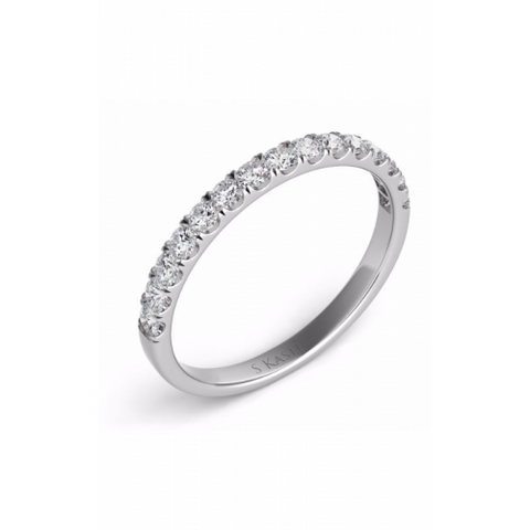 This exquisite wedding ring from S Kashi & Sons has an old-world charm and modern design details. Its 14k white gold surface produces a pleasant luster. The wedding ring’s blazing diamond stones has intricate handiwork and a dazzling pattern. Its round stones evoke elegance and taste. AZZI Jewelers have experienced jewelers on staff that can help you in your wedding band buying process. For a no-pressure and friendly experience contact us online or visit us in-store.