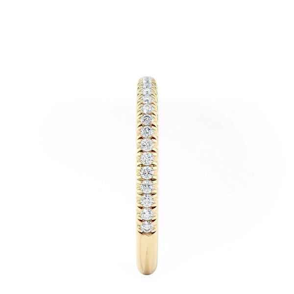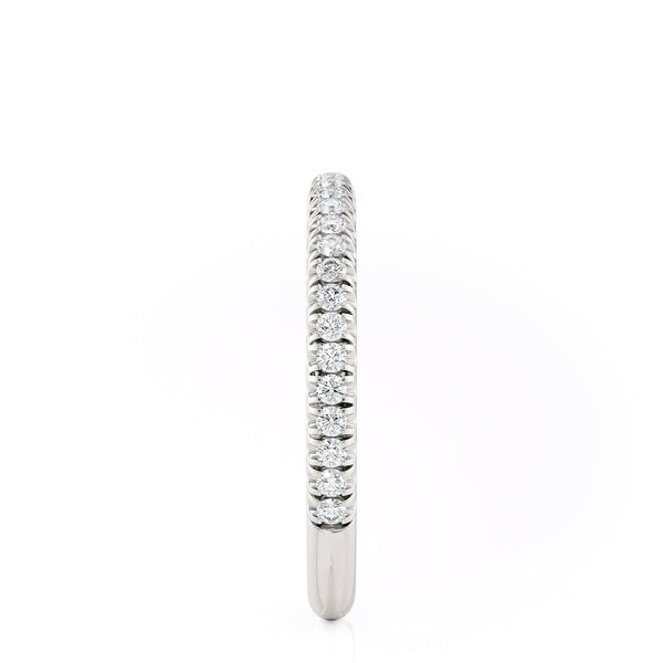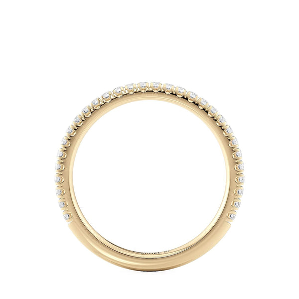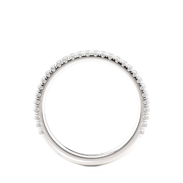 The R371B2 wedding band showcases a meticulous and refined design, enhanced by a sparkling row of diamonds. Meticulously crafted, this band exudes sophistication and elegance.