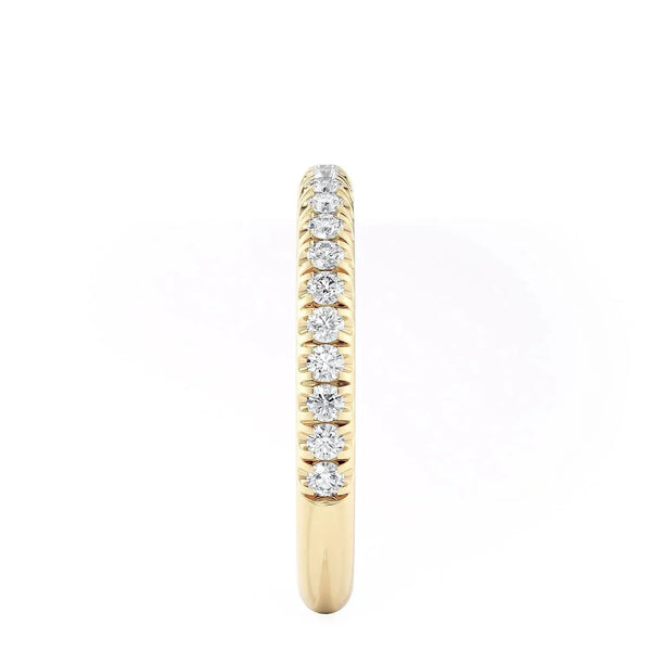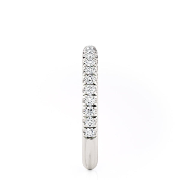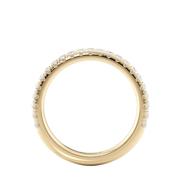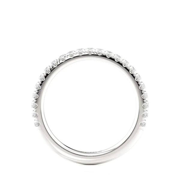 The R371B4 wedding band showcases a meticulous and refined design, enhanced by a sparkling row of diamonds. Meticulously crafted, this band exudes sophistication and elegance.