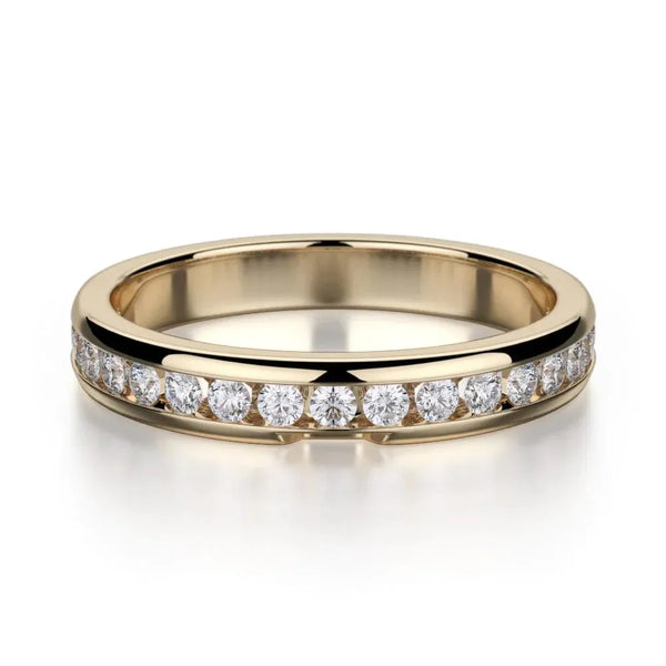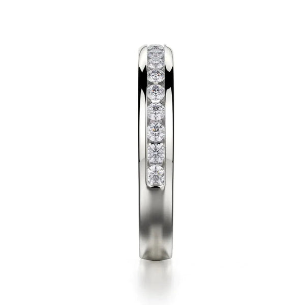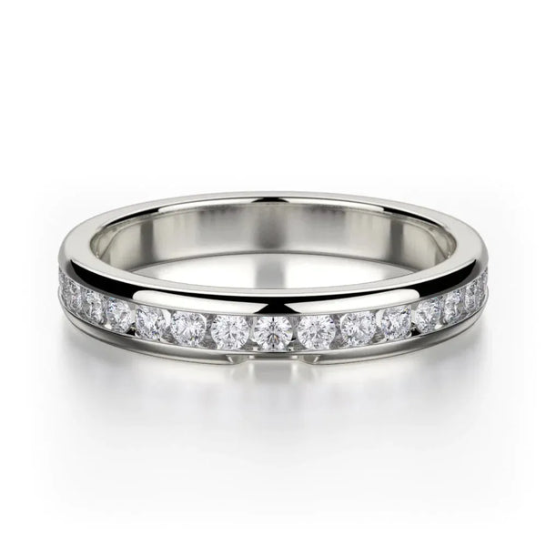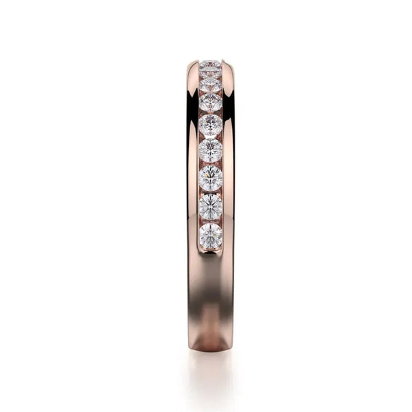 Explore the unparalleled elegance of Wedding Band R461B1. This remarkable choice embodies the essence of love with its stunning display of diamonds, elegantly enclosed by your selected metal.