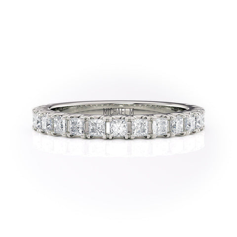 The R530B Wedding Band exemplifies exceptional craftsmanship and refined design, making it an ideal choice to symbolize romantic commitment. Featuring a sleek row of princess-cut diamonds, this exquisite ring delivers an understated yet sophisticated elegance.