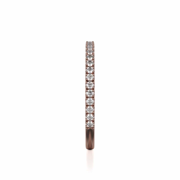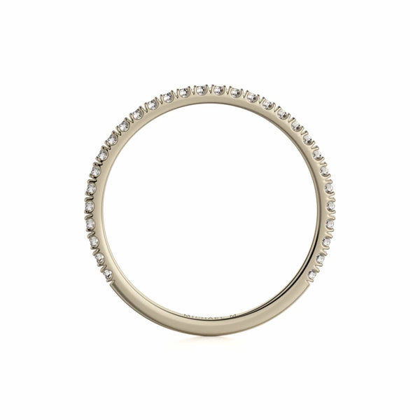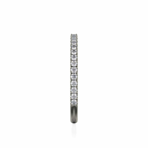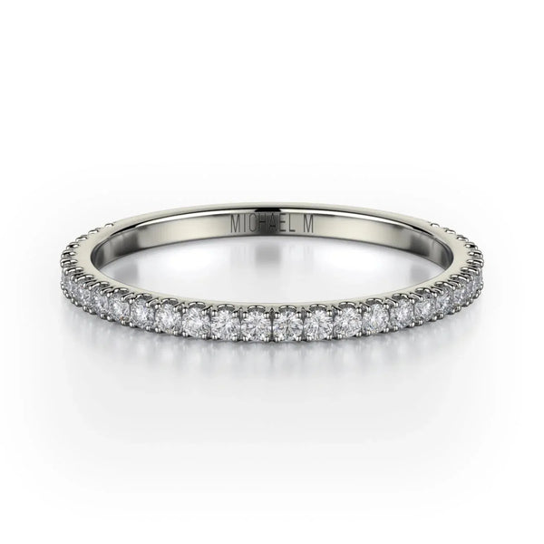 Designed with French-cut side diamonds, Wedding Band R742B is a tasteful and exquisite three-quarter band from the MICHAEL M collection. The brilliant diamonds provide elegant illumination to this stunning piece.