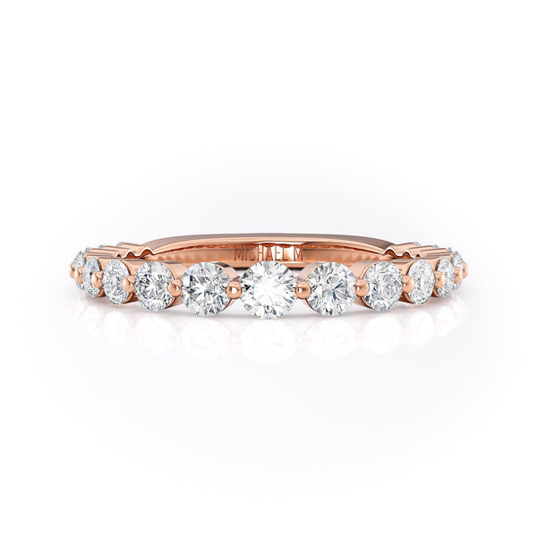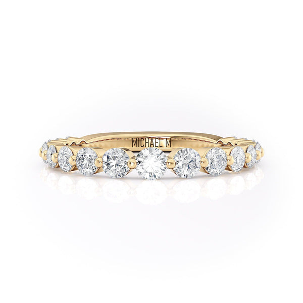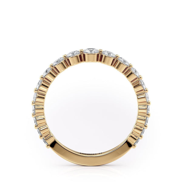 This wedding band is meticulously designed with premium diamonds, offering a classic and refined accent to your wedding ensemble. Featuring a continuous row of round diamonds that extends three-quarters around the band, it stands as an ideal selection for enduring elegance.
