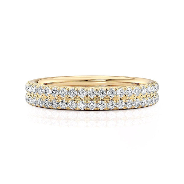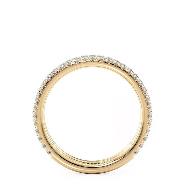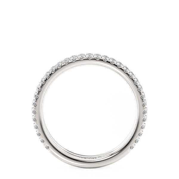Our R818B wedding band is a spectacle to behold. Crafted from round cut diamonds selected by a certified MICHAEL M gemologist, featuring a minimum average color of G, a minimum average clarity of VS, and hand-placed in a refined prong setting by one of MICHAEL M’s master artisans, this ring boasts a carat total weight of 0.42 and is sure to command attention.
