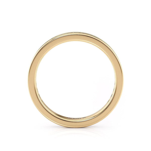 This MICHAEL M wedding band is an modernized classic. Exquisitely handcrafted, this ring showcases Princess diamonds channel set three quarters around and has a 0.65 CWT. Crafted of premium-grade materials, the R821B guarantees superior quality and durability for years to come.