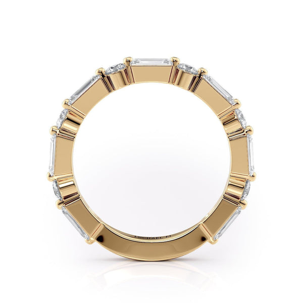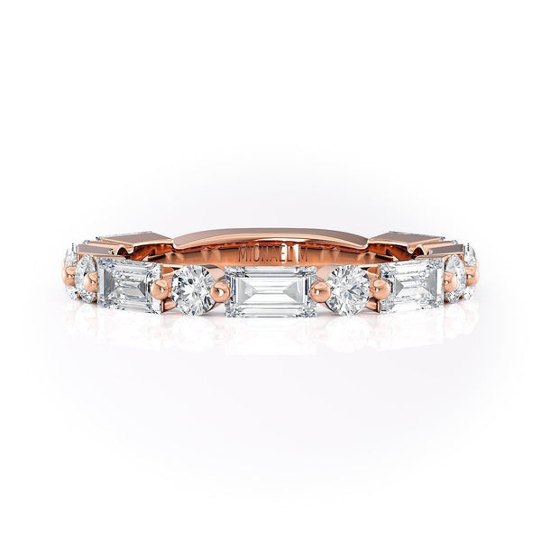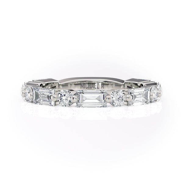 For a look that is both elegant and one of a kind, consider the Montage R830B Wedding band. This ring features a combination of baguette and round diamonds on the band. With these unique design elements, this ring is sure to make a statement.