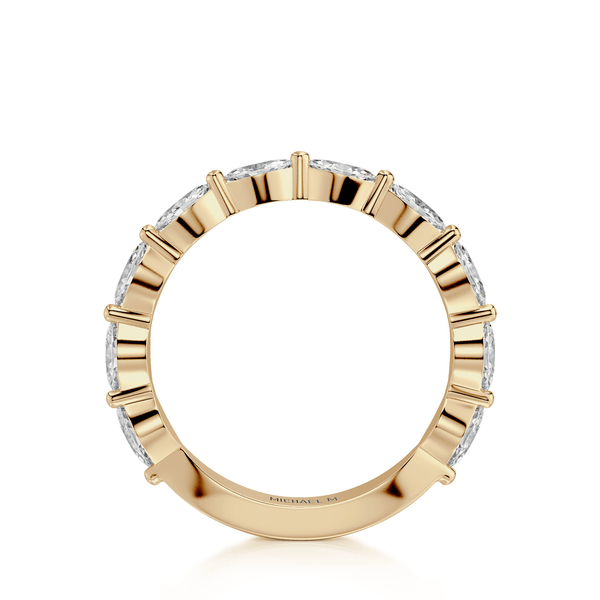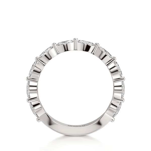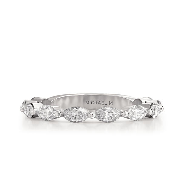 The R832B wedding band presents an enduring design featuring marquise diamonds set along three-quarters of the band. It complements its matching engagement ring perfectly, as well as any engagement ring with a marquise center stone, including solitaire settings.