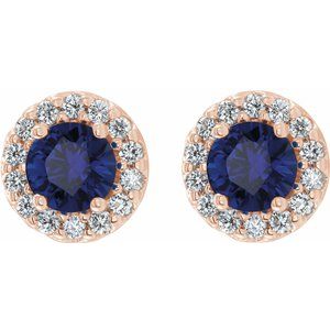 14K Rose 4 mm Lab-Grown Blue Sapphire & 1/8 CTW Natural Diamond Earrings