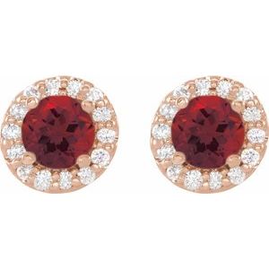 14K Rose 6 mm Natural Mozambique Garnet & 1/4 CTW Natural Diamond Earrings