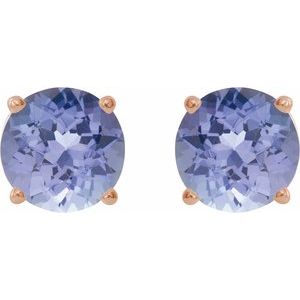 14K Rose 7 mm Natural Tanzanite Stud Earrings