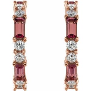 14K Rose Natural Pink Tourmaline & 1/2 CTW Natural Diamond 17.2 mm Hoop Earrings