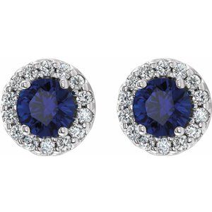 14K White 5 mm Lab-Grown Blue Sapphire & 1/4 CTW Natural Diamond Earrings