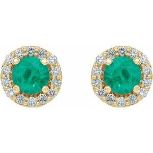 14K Yellow 4 mm Lab-Grown Emerald & 1/8 CTW Natural Diamond Earrings