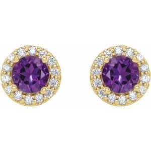 14K Yellow 4 mm Natural Amethyst & 1/8 CTW Natural Diamond Earrings