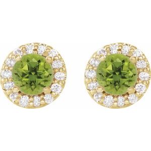 14K Yellow 4 mm Natural Peridot & 1/8 CTW Natural Diamond Earrings