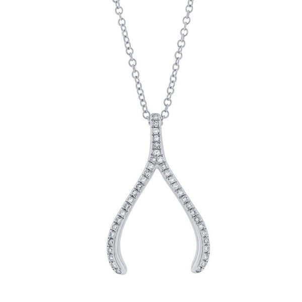 0.12CT 14K W/G DIAMOND WISHBONE NECKLACE